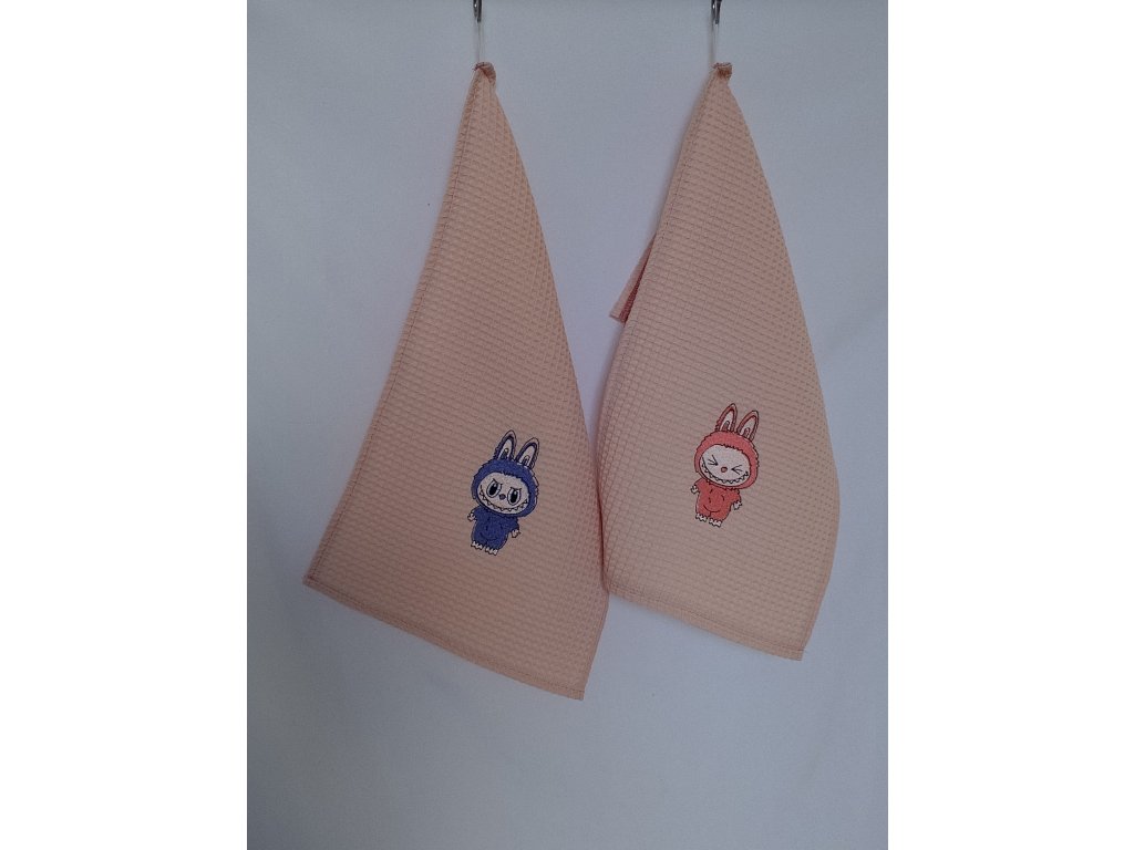 Celkový dojem týchto uteráčikov je nežný a hravý – spájajú detskú fantáziu s praktickým využitím. Motív Labubu pôsobí ako kamarát, ktorý sprevádza dieťa pri každodenných činnostiach a robí ich zábavnejšími. Vďaka pestrým farbám a textúre vafloviny sú tieto uteráčiky nielen užitočné, ale aj krásne na pohľad – ako malé kúsky radosti, ktoré prinášajú úsmev do každého kúpeľného rituálu.