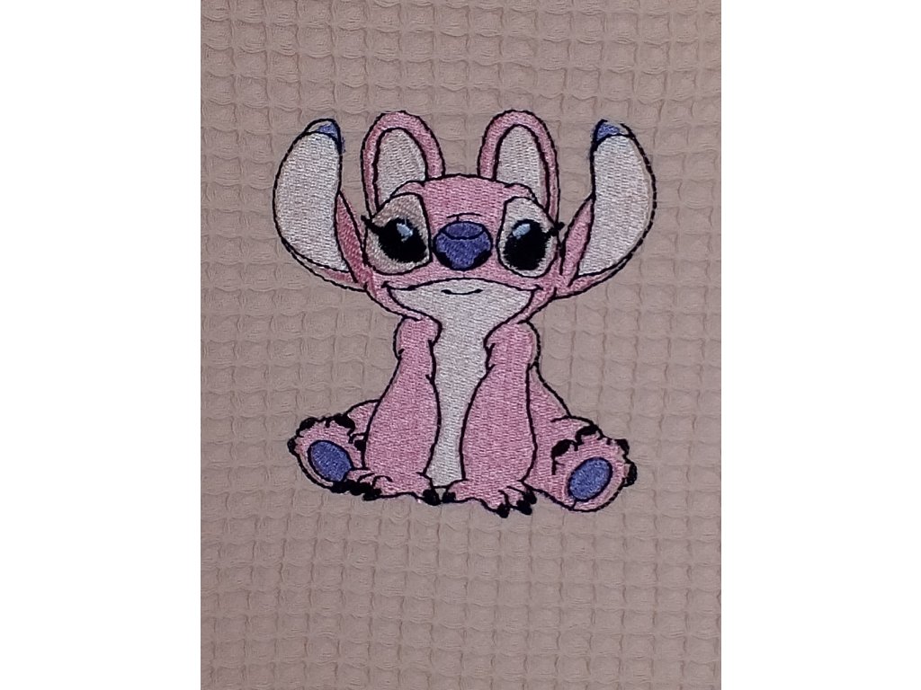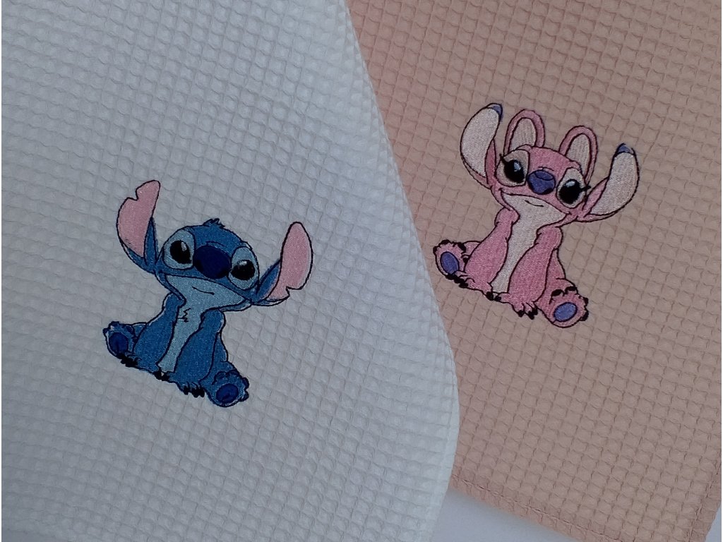 Celkový dojem je: jemný, rozkošný a hravý. Vaflovina mu dáva útulnosť a ľahkosť, zatiaľ čo výšivka so Stitchom alebo Angelom vnáša do každodenných rituálov kúzlo detskej fantázie.