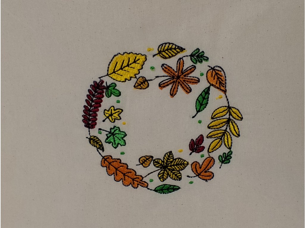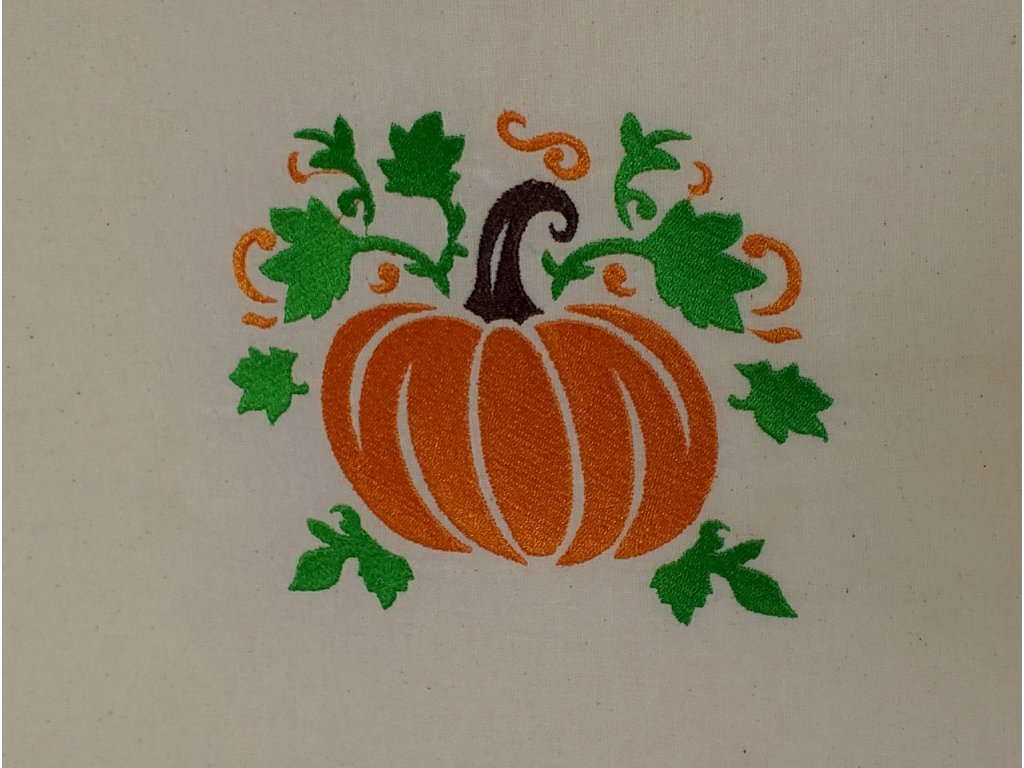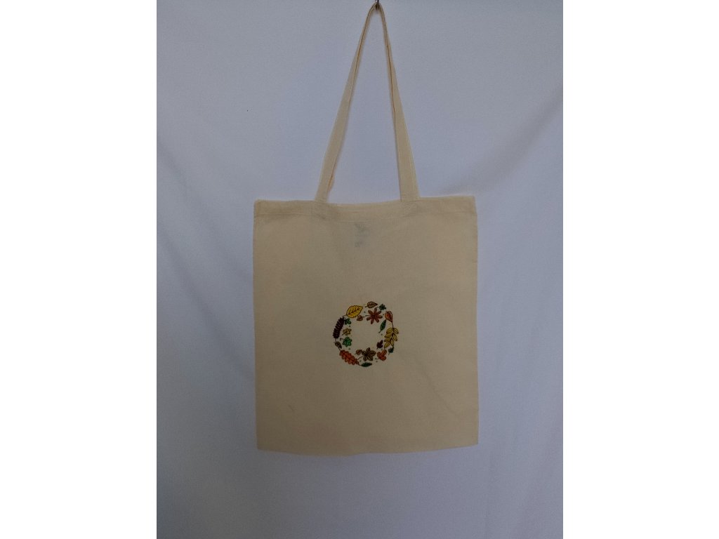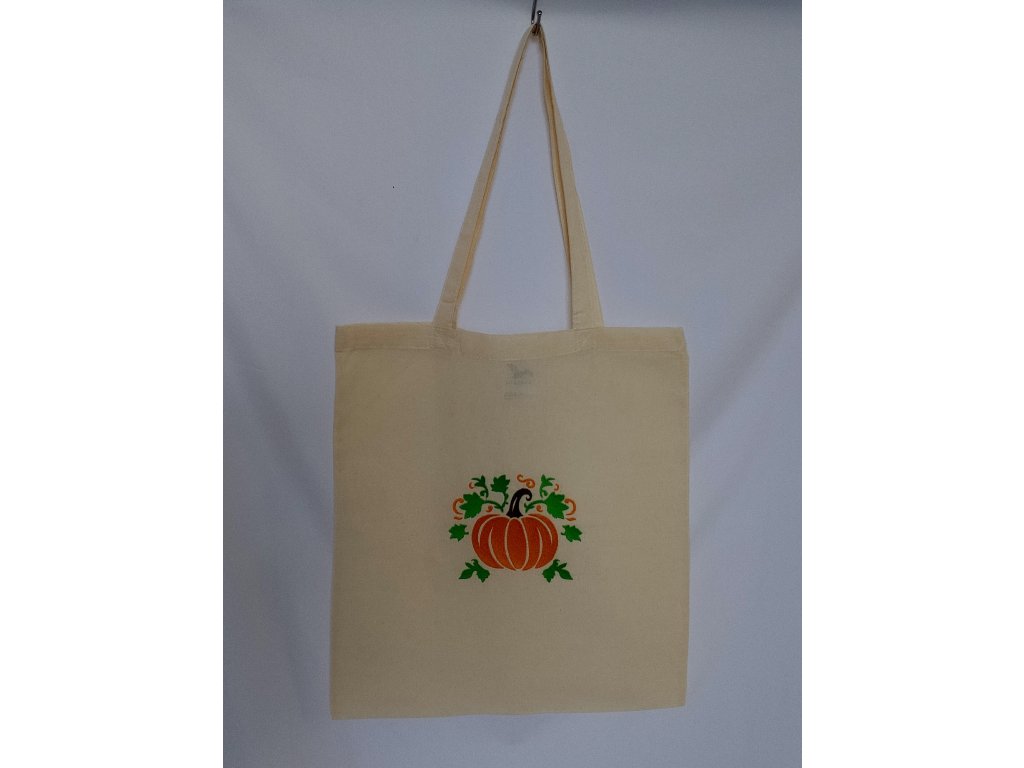 Farebné nite vytvárajú krásny kontrast so základnou farbou látky – ak je taška prírodne béžová alebo biela, tekvičky na nej žiaria ako drobné slnečné plody. Ak je podklad tmavší, oranžové a žlté tóny výšivky ešte viac vyniknú a dodajú taške živý charakter.