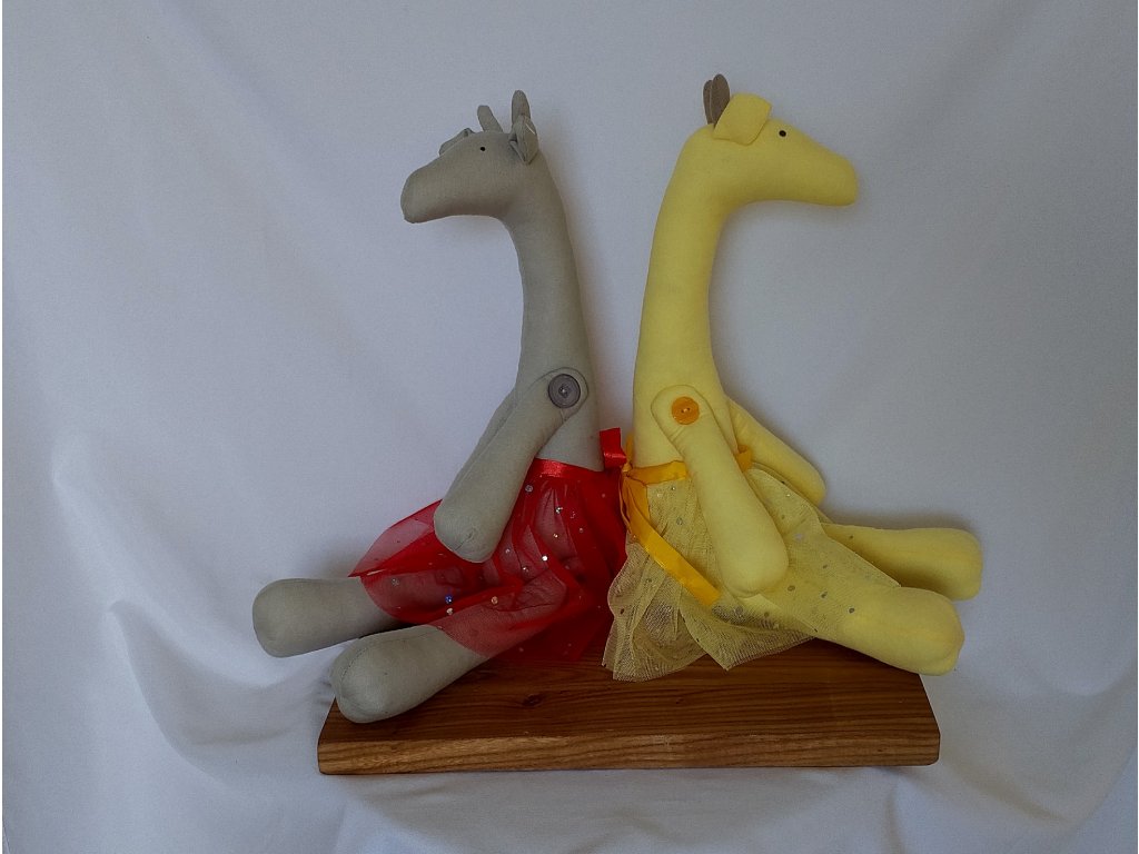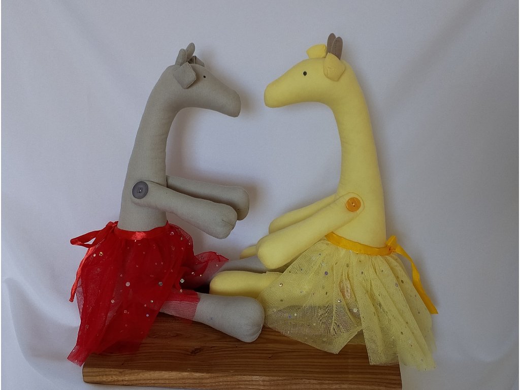 Niektoré šité žirafky majú aj dlhý, tenký chvostík s malým strapčekom na konci – ušitý zo zvyškov látky alebo ozdobený kúskom priadze. Celkový dojem takejto hračky je mäkký, prítulný a veselý. Žirafka je často navrhnutá tak, aby sedela, stála alebo sa dala zavesiť, a preto býva obľúbeným spoločníkom nielen pri hraní, ale aj pri zaspávaní.