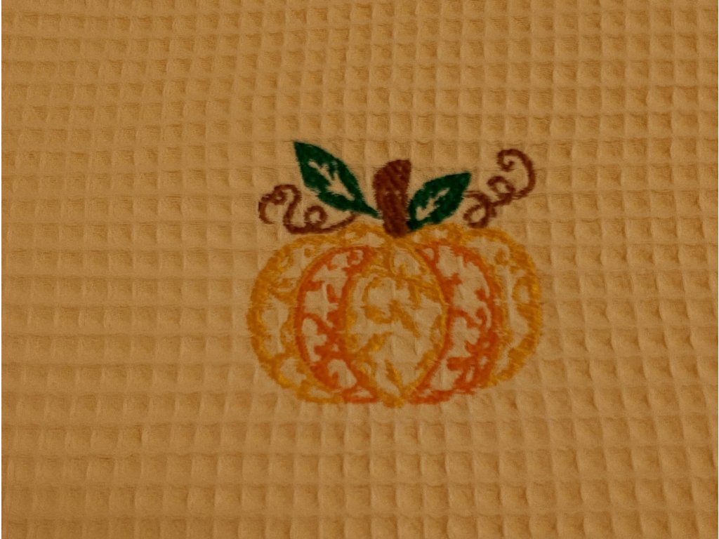 Každá utierka je vyrobená z kvalitnej 100 % bavlny alebo ľanu, ktoré vynikajú vynikajúcou savosťou a dlhou životnosťou. Materiál je pevný, ale zároveň mäkký na dotyk, čo zaručuje pohodlné používanie pri varení, pečení či utieraní riadu. Na prednej strane sa nachádza precízna strojová výšivka s motívom drobných alebo väčších tekvičiek – v jemných odtieňoch oranžovej, hnedej, zelenej či horčicovej. Každý steh je presne vedený, čo dodáva výšivke čisté línie, hĺbku a realistický vzhľad.